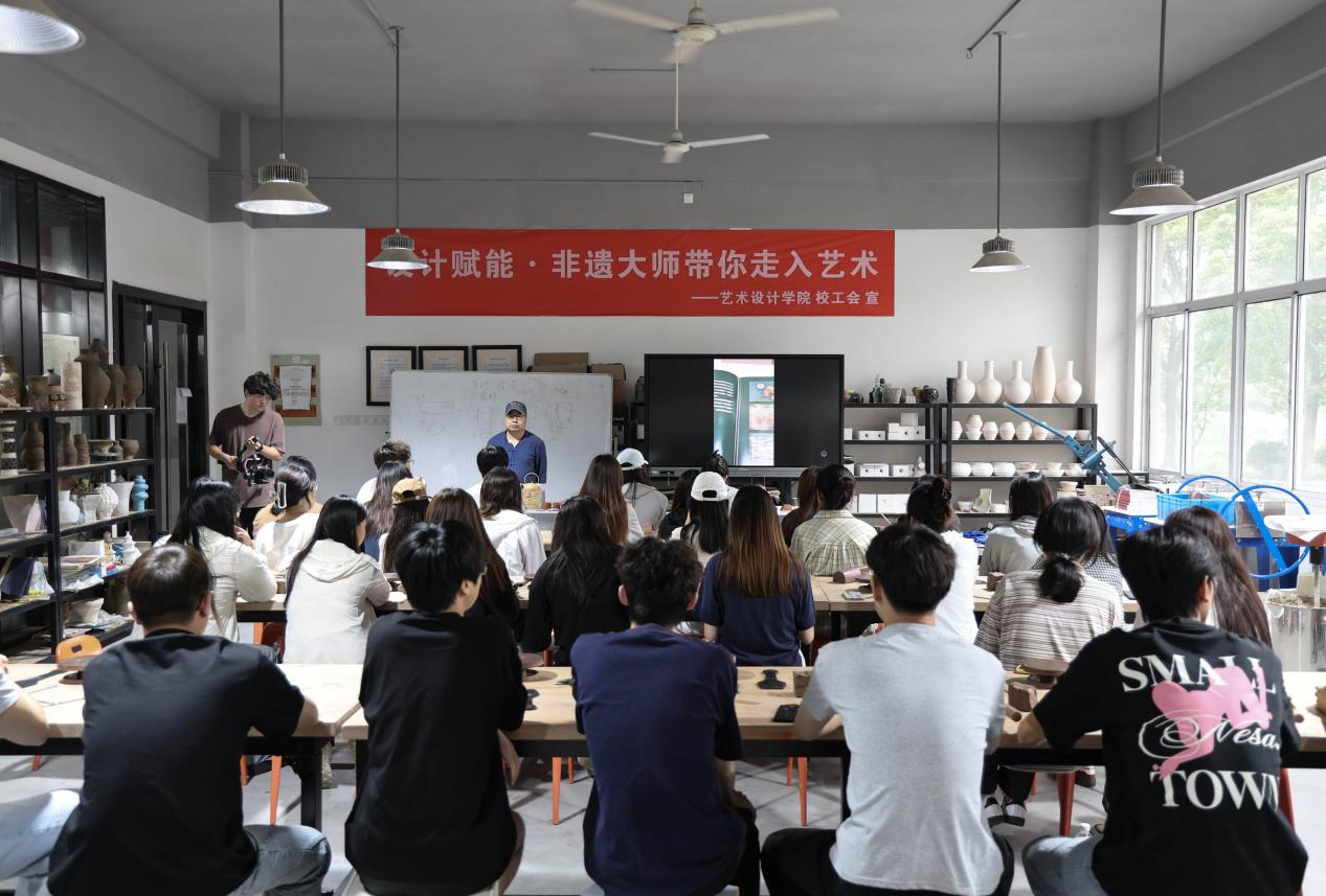 5月15日,江苏省陶瓷艺术名人、正高级乡村振兴技艺师、研究员级高级工艺美术师、艺术设计学院客座教授朱国强应邀来校开展“设计赋能·非遗大师带你走入艺术”宜兴紫砂文创体验活动。艺术设计学院院长刘雪花主持活动。