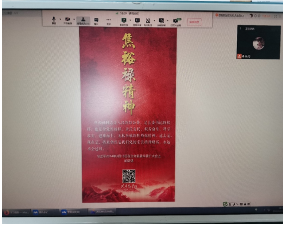 今年8月16日是焦裕禄同志诞辰100周年纪念日。基础部教工第一党支部于8月29日下午线上开展了“纪念焦裕禄同志诞辰100周年,学习焦裕禄精神”主题党日活动,活动由支部书记余玲老师主持,全体党员参加了此次活动。