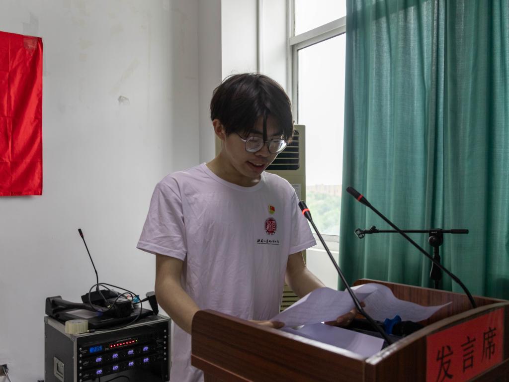 社会实践团学生代表魏民发言,他表示将在实践过程中保持谦虚的学习态度,不断提升自己的综合素质和实践能力,同时磨砺意志品格,争做有理想、敢担当、能吃苦、肯奋斗的新时代好青年,把青春华章写在祖国大地上。