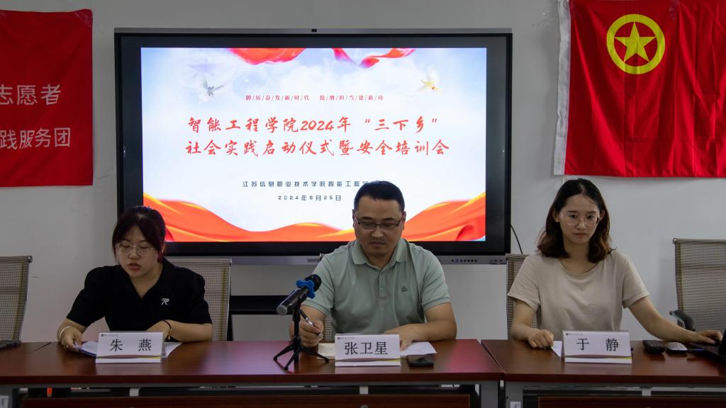 为深入学习贯彻习近平新时代中国特色社会主义思想,引导广大青年学生在社会课堂中受教育、长才干、作贡献,6月25日下午,智能工程学院举行2024年“三下乡”社会实践启动仪式暨安全培训会。启动仪式由社会实践团指导老师朱燕主持。